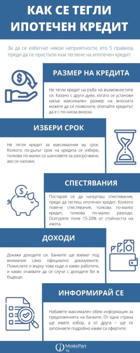 Всеки иска да получи най-доброто за себе си и за семейството си. Най-доброто, обаче, има цена, а тя не е по възможностите на всеки. Когато се питаме как се тегли ипотечен кредит, първо трябва да разберем дали можем да се справим с него. Както се казва: „Не скачай, преди да си казал „Хоп““. При кандидатстване за ипотечен кредит, тази мъдрост е добре да си я повтаряме колкото може по-често. Необмислените действия струват скъпо. За да се избегнат някои неприятности, ето някои правила, преди да се пристъпи към теглене на ипотечен кредит: